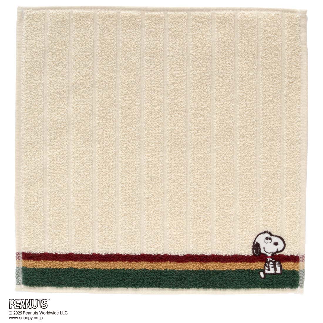 スヌーピー メンズ タオルハンカチ ストライプ スヌーピー刺繍 アイボリー 【PEANUTS】