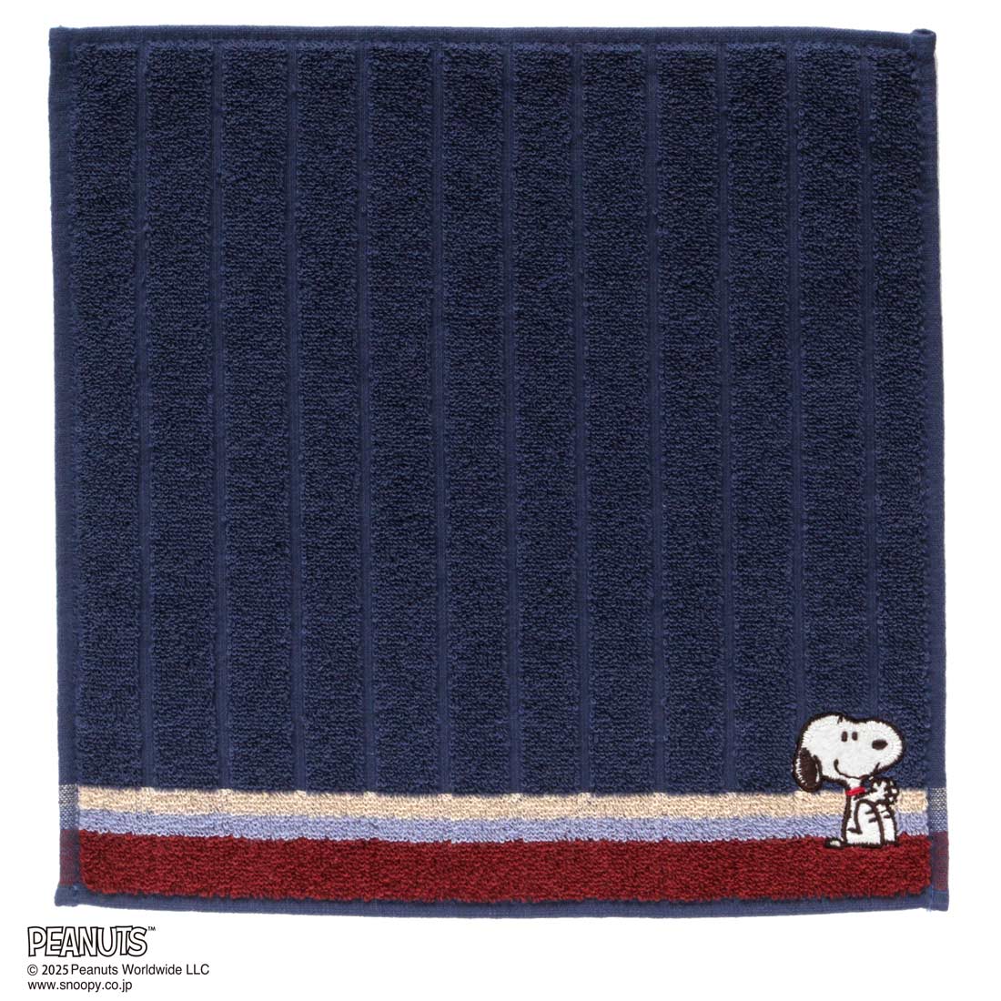 スヌーピー メンズ タオルハンカチ ストライプ スヌーピー刺繍 ネイビー 【PEANUTS】