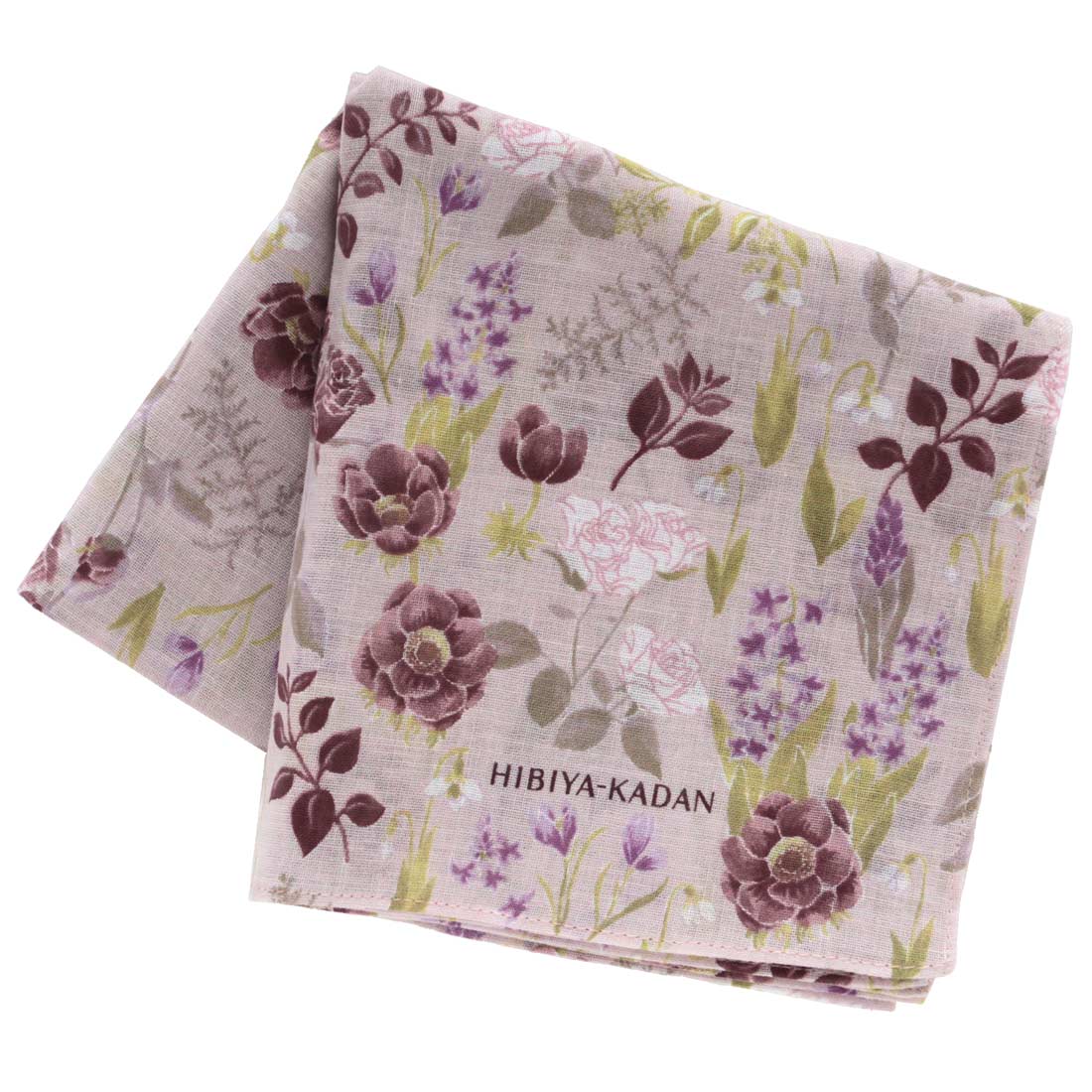 ヒビヤカダン 大判 ガーゼハンカチ(58cm)季節の花々 ピンク
