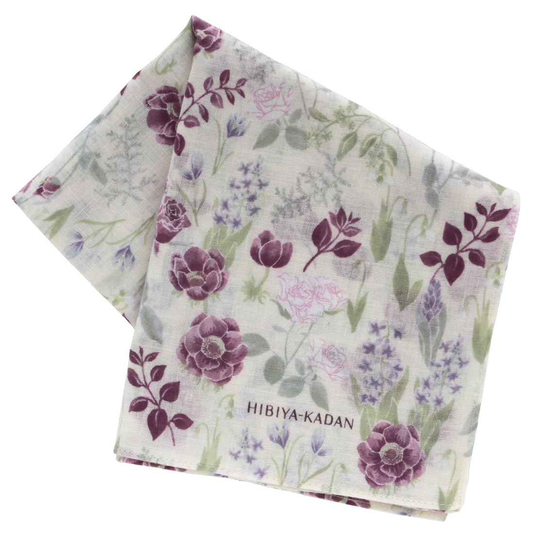 ヒビヤカダン 大判 ガーゼハンカチ(58cm)季節の花々 アイボリー