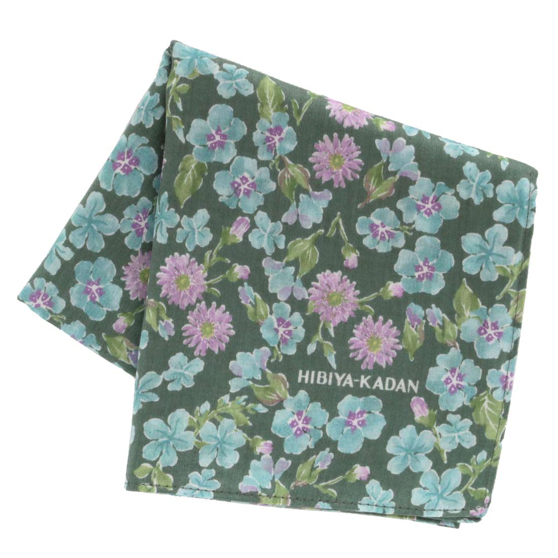 ヒビヤカダン プリントハンカチ 季節の花々 グリーン 【日比谷花壇 HIBIYA-KADAN】