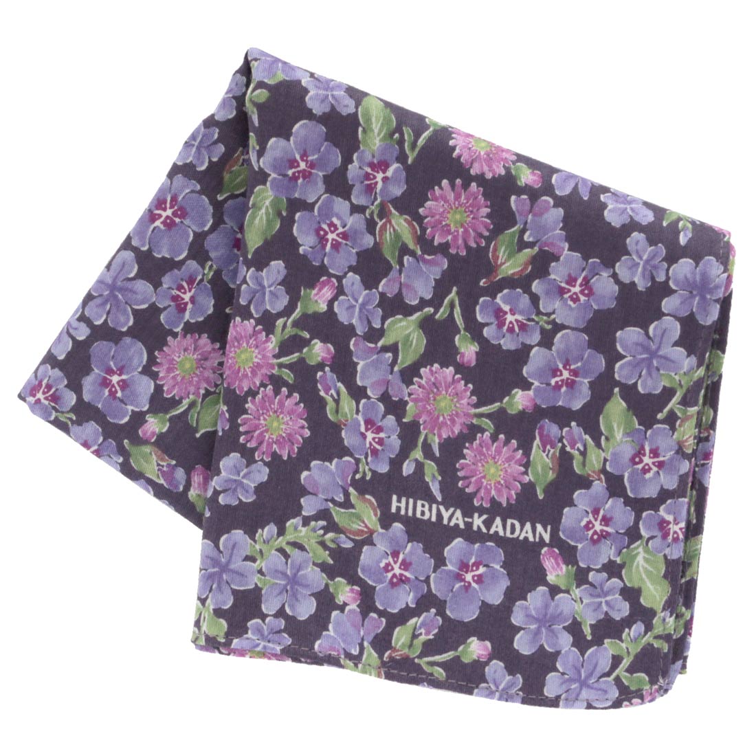 ヒビヤカダン プリントハンカチ 季節の花々 パープル 【日比谷花壇 HIBIYA-KADAN】