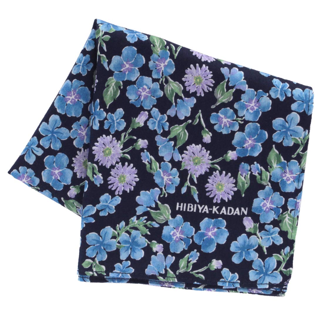 ヒビヤカダン プリントハンカチ 季節の花々 ネイビー 【日比谷花壇 HIBIYA-KADAN】