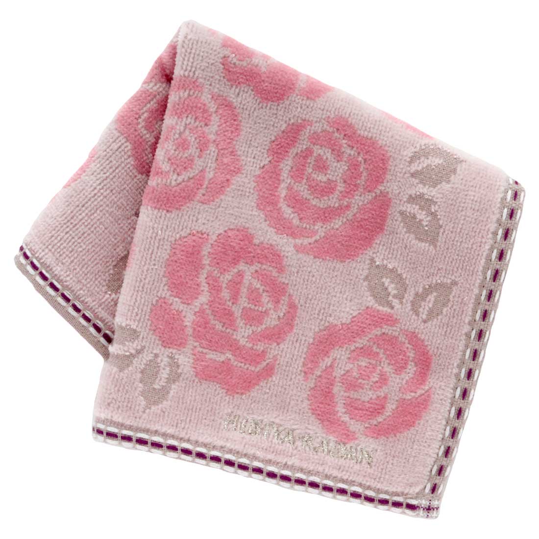ヒビヤカダン タオルハンカチ バラモチーフ 縁取りステッチ ピンク