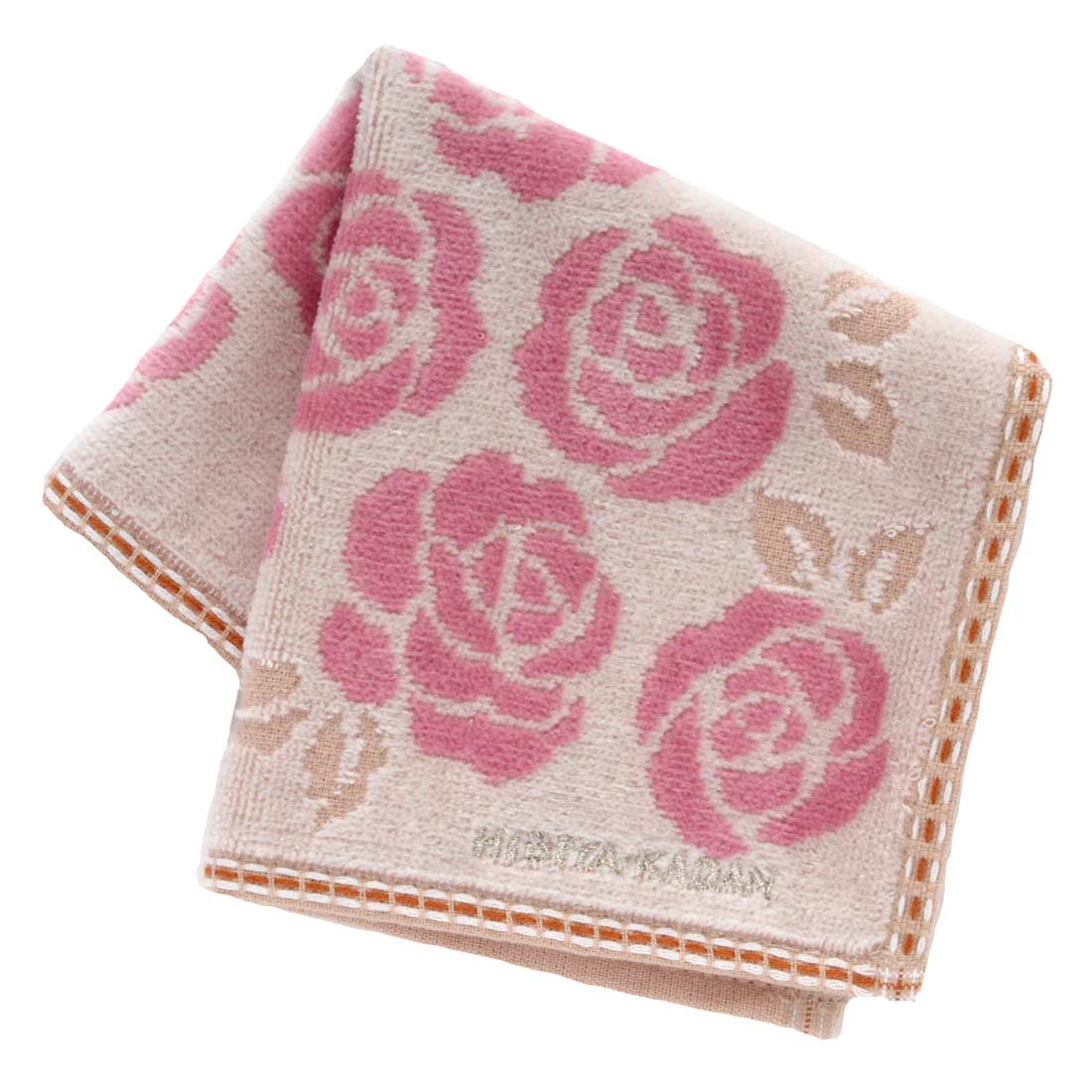 ヒビヤカダン タオルハンカチ バラモチーフ 縁取りステッチ アイボリー