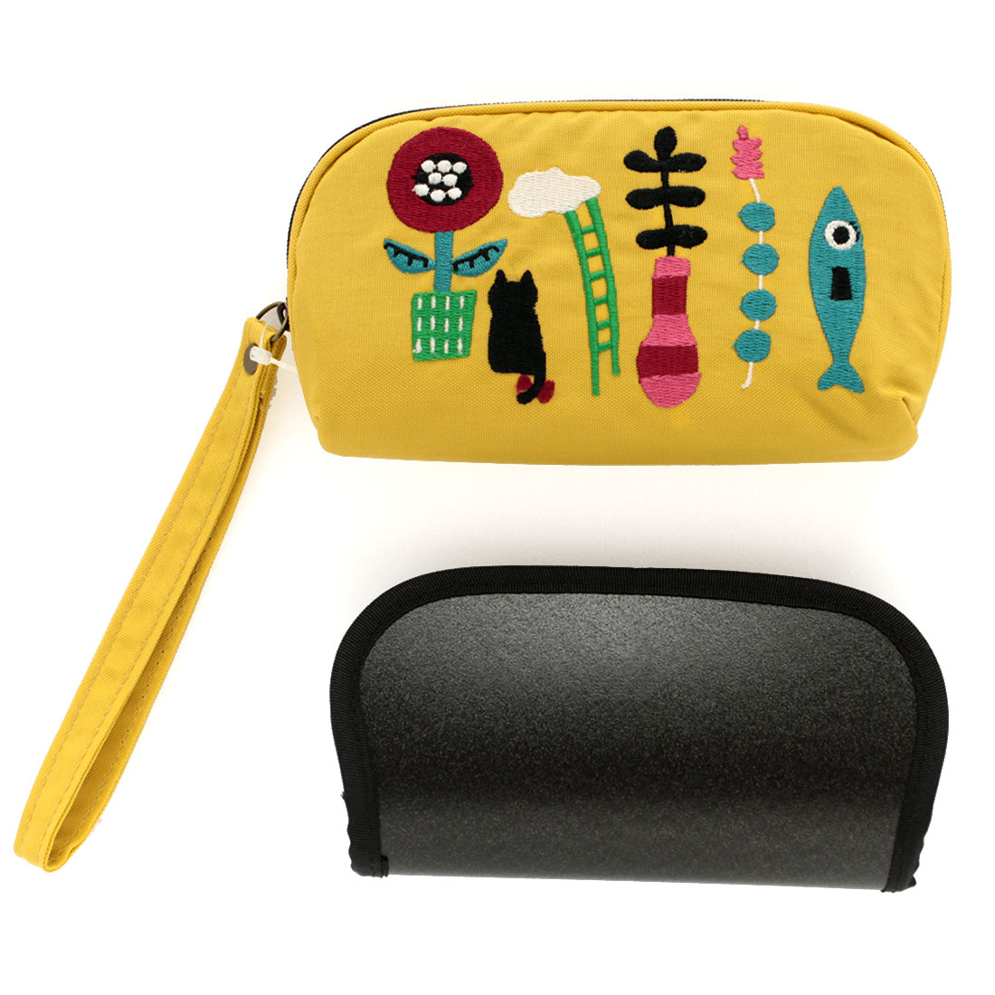アツコマタノ 刺繍マルチケース(メガネ収納可)ドリーム イエロー 【Atsuko Matano】