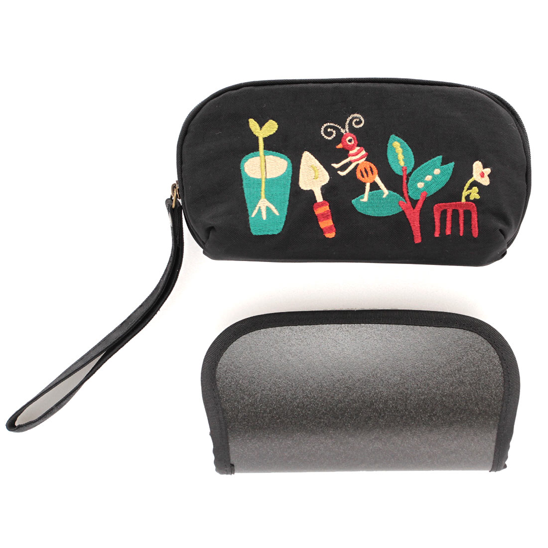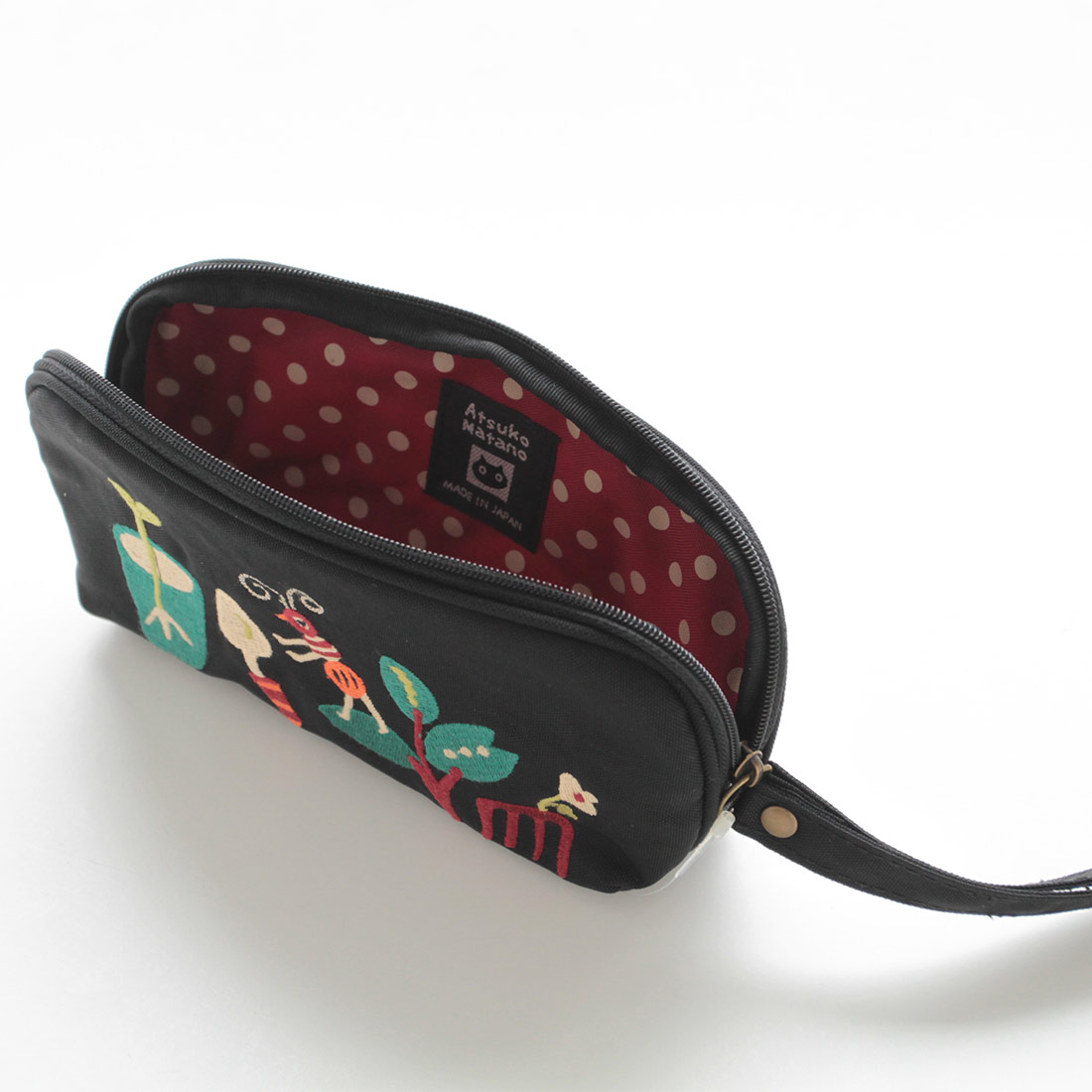アツコマタノ 刺繍マルチケース(メガネ収納可)ガーデン ブラック 【Atsuko Matano】