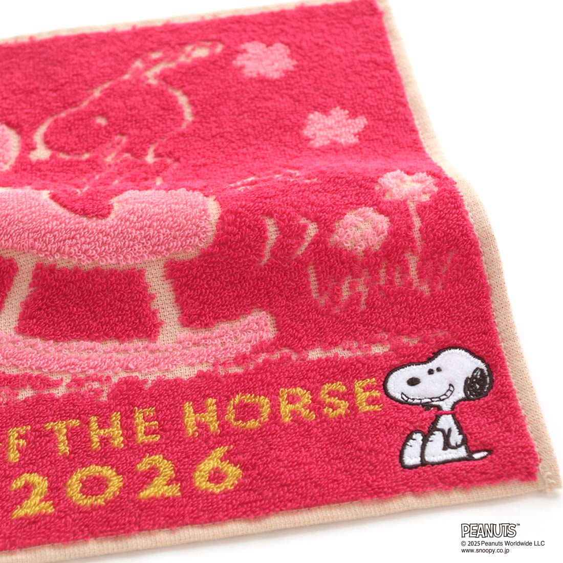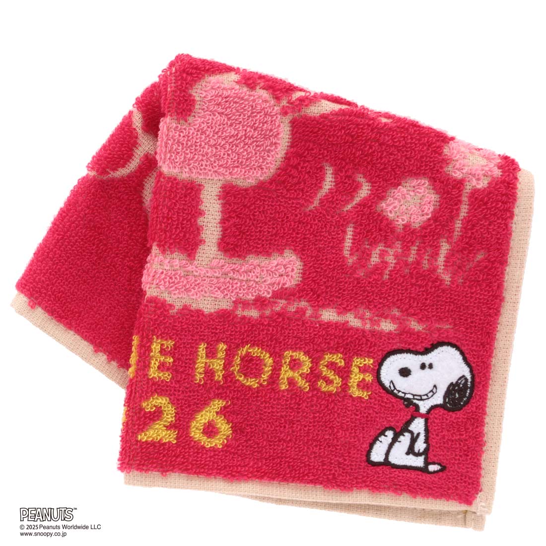 スヌーピー タオルハンカチ 干支 木馬に乗るスヌーピー ピンク 【PEANUTS】