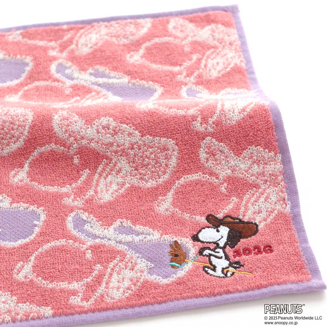 スヌーピー タオルハンカチ 干支 棒馬に乗るスヌーピー ピンク 【PEANUTS】