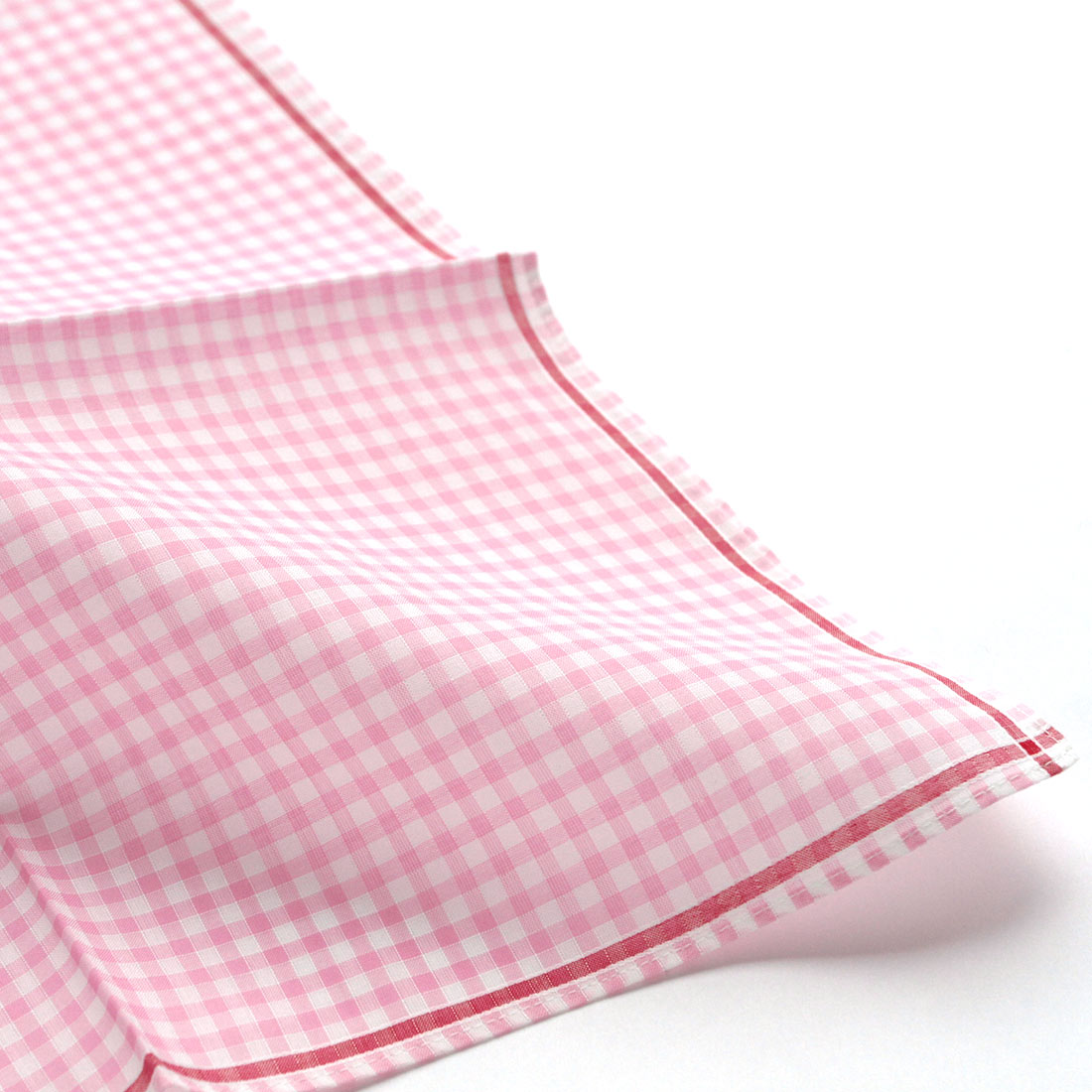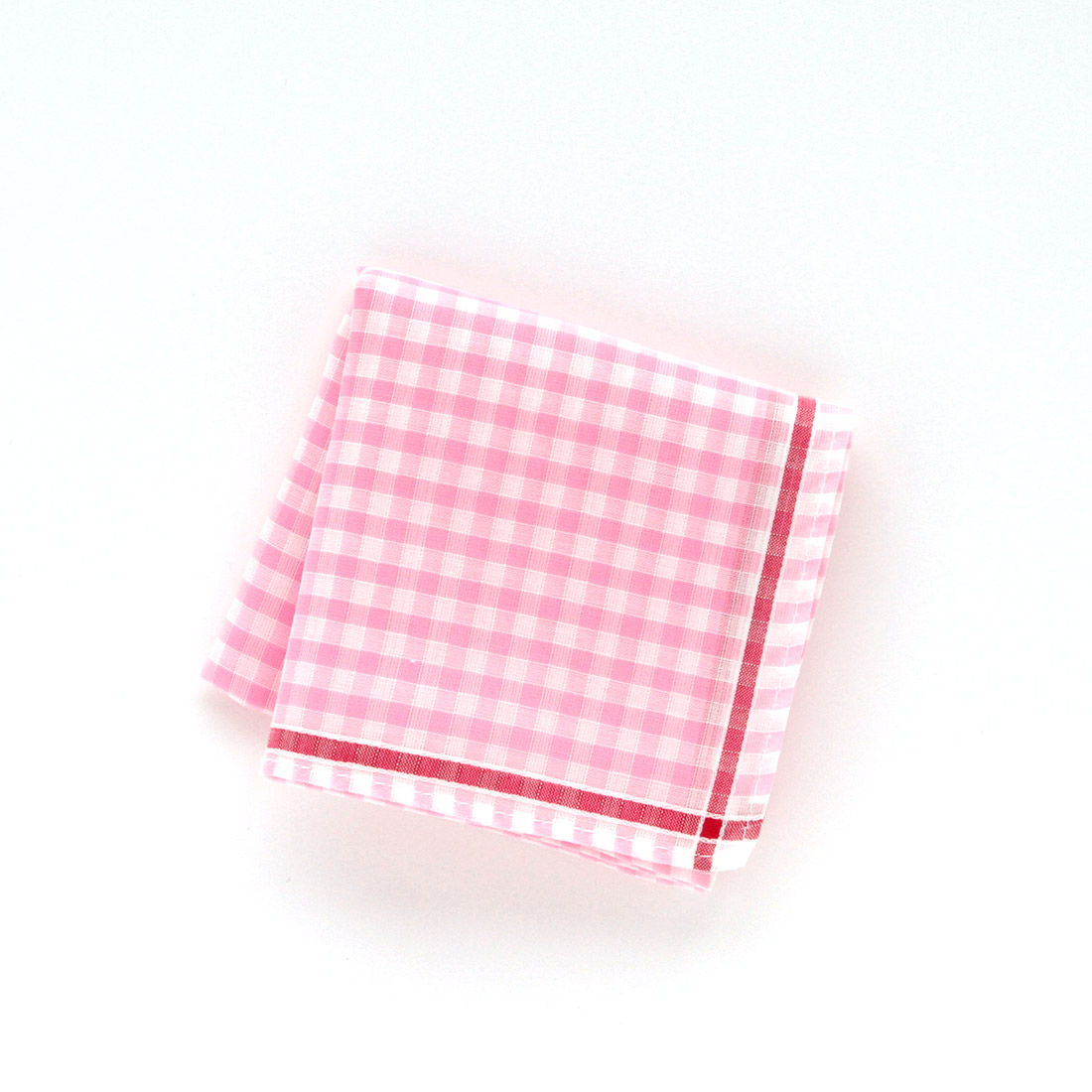 日本製丁寧に織り上げたギンガムチェック柄のハンカチ。縁にはカラーに合わせたサテンラインを飾りました。日常使いはもちろん、フォーマルなシーンでもお使いいただけるスタンダードな一枚です。
